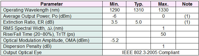 Note 3: RD+/- outputs are internally AC coupled, and should be terminated with 100Ohm (differential) at the user SERDES.Optical Characteristics